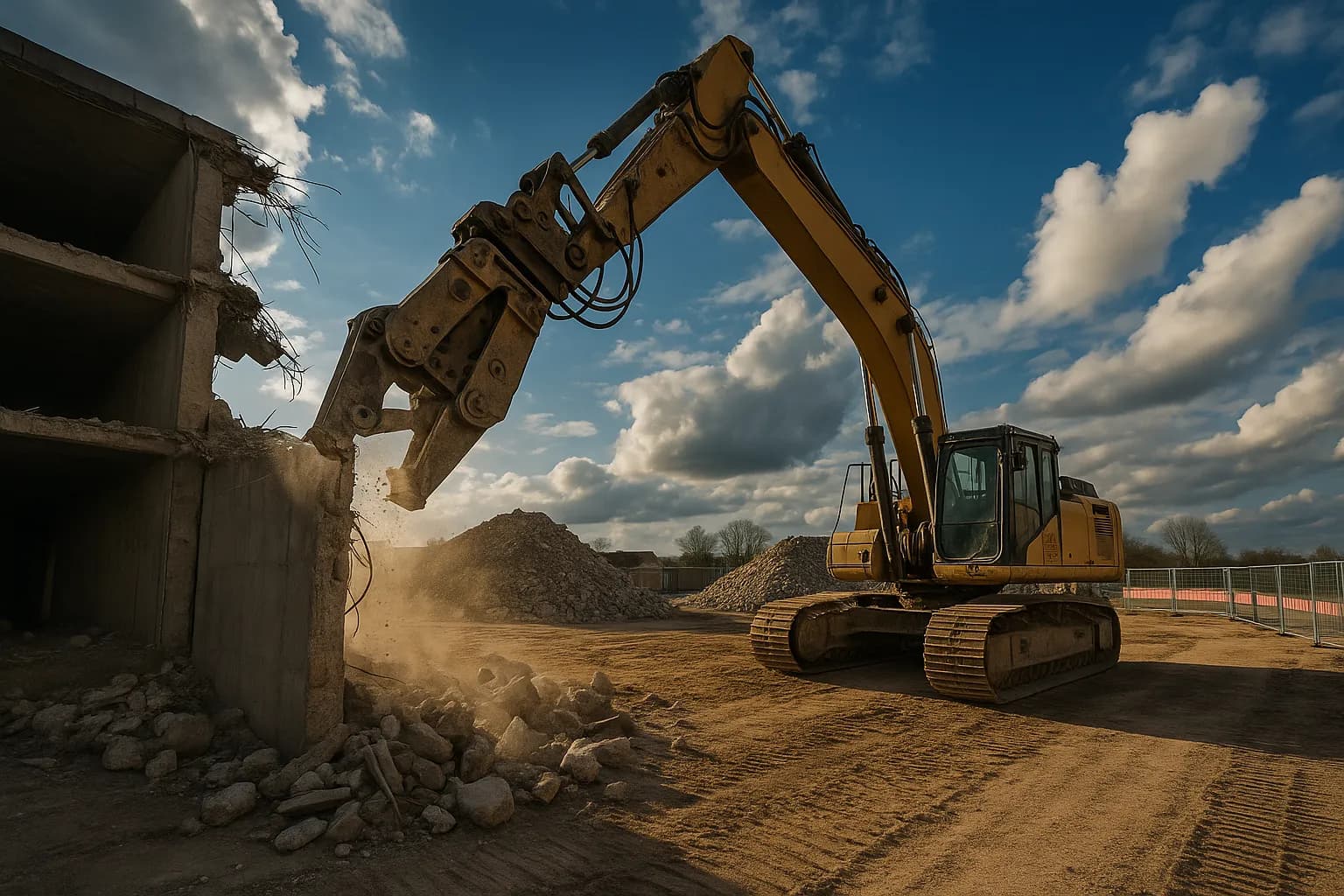 Vollständiger Abbruch von Gebäuden inklusive Gründung mit schwerem Gerät und erfahrenen Spezialisten.